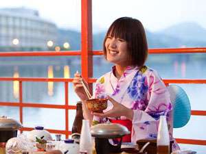 各旅館へ屋形船の御予約頂ければ、OKです。お部屋のお食事をそのまま船にお運びして、当館自慢の本格懐石料理をお楽しみいただき、水上の大宴会でおおいに盛り上がって下さい。